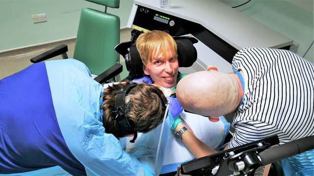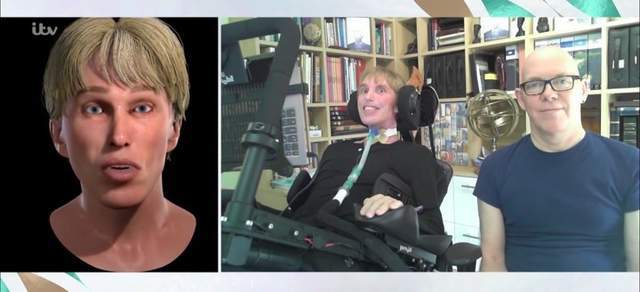 他在身上接入了 4 根管子,分别用于进食、呼吸和排泄。眼动追踪设备和霍金同款的 AI 软件,帮助他顺畅地表达想法。他的文字想法会快速转为语音,由合成声音进行讲述;同一时间,彼得的虚拟化身在根据语音内容,做出唇形变化、节奏停顿和摇头晃脑等动作。